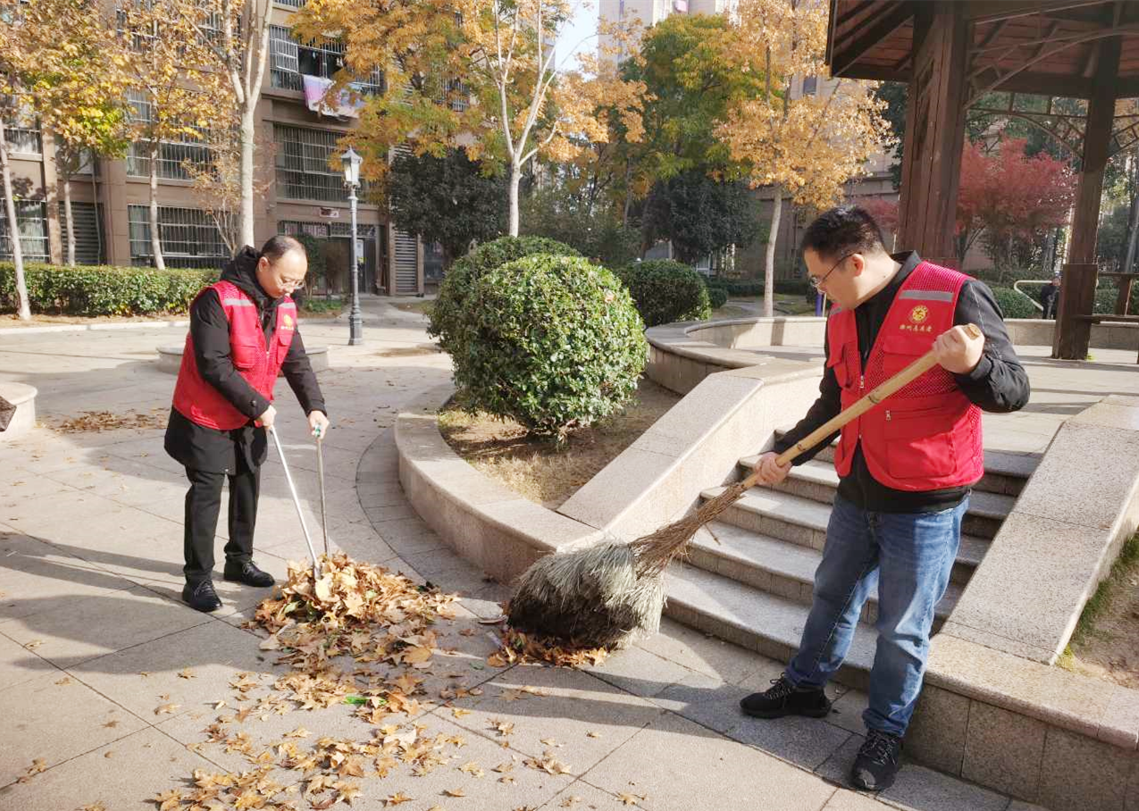 隨后黨員志愿者們身體力行,清掃小區(qū)廣場落葉,清除公共場所、內(nèi)部道路、樓前屋后的垃圾,幫助社區(qū)做好環(huán)境衛(wèi)生清潔工作。