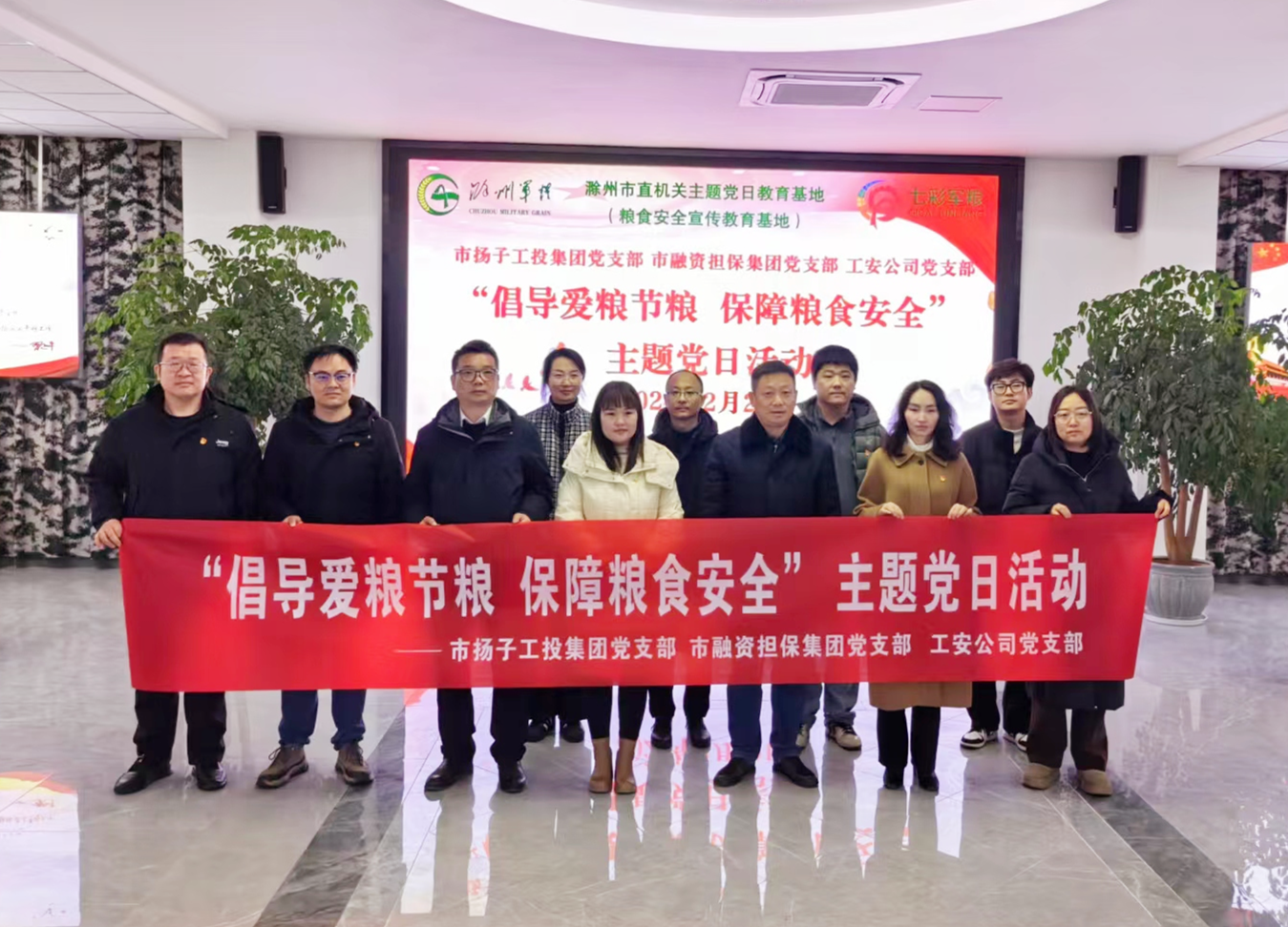 為進(jìn)一步弘揚(yáng)中華民族傳統(tǒng)美德,領(lǐng)悟糧食安全是“國(guó)之大者”的深刻內(nèi)涵,2月29日,市融資擔(dān)保集團(tuán)黨支部聯(lián)合市揚(yáng)子工投集團(tuán)黨支部、普惠融資擔(dān)保公司黨支部組織前往滁州市軍糧供應(yīng)站主題黨日基地,開展“倡導(dǎo)愛糧節(jié)糧 保障糧食安全”主題黨日活動(dòng)。