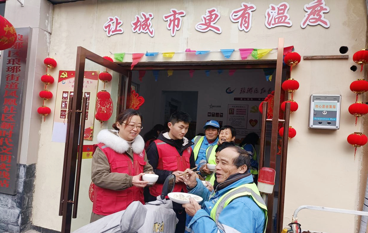為讓環(huán)衛(wèi)工人感受到節(jié)日祝福和社會(huì)關(guān)愛(ài),市擔(dān)保集團(tuán)志愿者來(lái)到鳳凰社區(qū)開(kāi)展“大年初一送水餃 溫情暖人心”活動(dòng)?;顒?dòng)中,志愿者們向環(huán)衛(wèi)工人表達(dá)溫馨的新春祝福,并送上熱氣騰騰的餃子,為新春佳節(jié)增添了濃濃的年味。