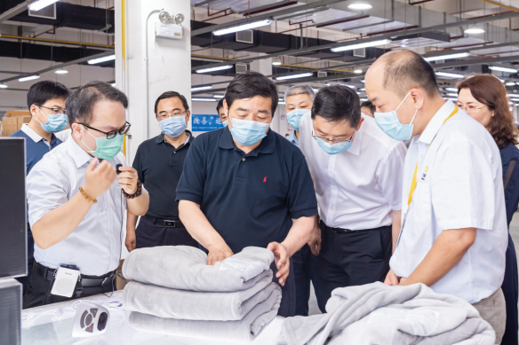 在創(chuàng)歷電器、勝華波、宏威電子等處,許繼偉走進(jìn)生產(chǎn)車間,看生產(chǎn)現(xiàn)狀、問發(fā)展謀劃,詢問疫情影響,了解亟需解決的困難、問題。得知不少企業(yè)通過大力拓展國內(nèi)國際兩個市場,訂單不斷增加,生產(chǎn)經(jīng)營呈現(xiàn)穩(wěn)中有升勢頭,許繼偉給予肯定,強(qiáng)調(diào)要善于搶抓機(jī)遇,找準(zhǔn)特色優(yōu)勢,積極拓展市場,推動發(fā)展再上新的臺階。叮囑相關(guān)部門要深入企業(yè),積極對接、主動服務(wù),把問題訴求帶回來,把實(shí)際困難解決好,為企業(yè)發(fā)展提供優(yōu)質(zhì)服務(wù)、強(qiáng)化要素保障,不斷提升市場主體獲得感和滿意度。