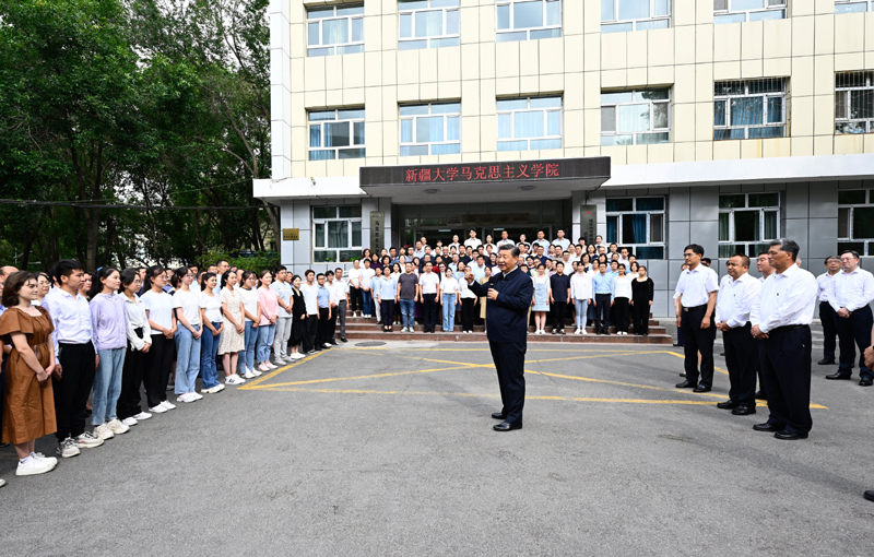 7月12日至15日,習近平在新疆維吾爾自治區(qū)黨委書記馬興瑞、自治區(qū)政府主席艾爾肯·吐尼亞孜陪同下,先后來到烏魯木齊、石河子、吐魯番等地,深入學校、國際陸港區(qū)、社區(qū)、博物館、農(nóng)村和新疆生產(chǎn)建設(shè)兵團等進行調(diào)研。