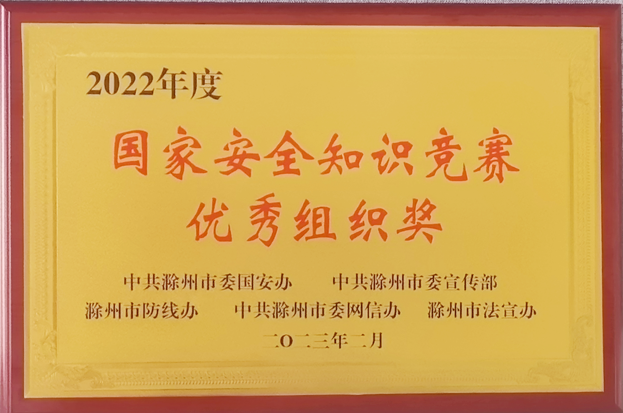 近日,市擔(dān)保集團(tuán)榮獲滁州市第四屆國家安全有獎知識競賽優(yōu)秀組織獎,該競賽由市委國安辦、市委宣傳部、市防線辦、市委網(wǎng)信辦、市法宣辦等五部門聯(lián)合舉辦,全市僅12家單位獲此榮譽。