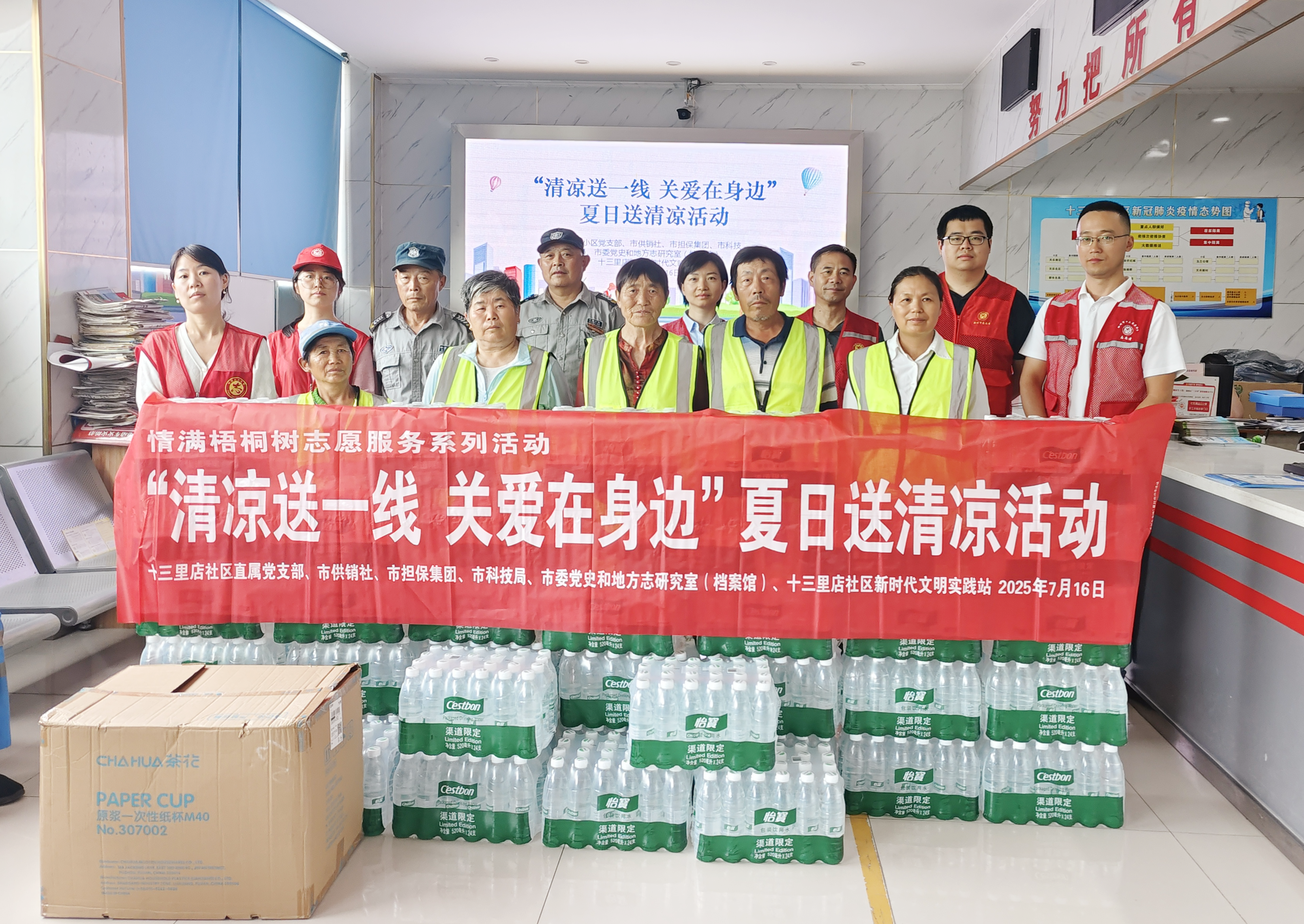 - 入夏以來,持續(xù)高溫炙烤大地,給戶外作業(yè)的環(huán)衛(wèi)工人帶來了嚴(yán)峻“烤”驗(yàn)。為給炎炎夏日里高溫下作業(yè)的社區(qū)環(huán)衛(wèi)工人們送去一絲清涼和關(guān)愛,7月16日,市擔(dān)保集團(tuán)三個(gè)黨支部聯(lián)合共建單位的黨組織,共同開展“清涼送一線 關(guān)愛在身邊”黨員志愿服務(wù)活動,為共建的十三里店社區(qū)全體環(huán)衛(wèi)工人送去黨組織的關(guān)懷與問候。 活動中,黨員志愿者們將提前準(zhǔn)備好的礦泉水、毛巾、香皂、花露水等防暑降溫物品一一分送到轄區(qū)每一位環(huán)衛(wèi)工手中,并向他們表達(dá)真誠的問候和感激,是他們冒酷暑、頂烈日,用實(shí)際行動維護(hù)著社區(qū)的環(huán)境整潔,收到物品的環(huán)衛(wèi)工人們顯得格外開心。 通過夏日送清涼志愿服務(wù)活動,進(jìn)一步拉近黨員與群眾的距離,密切黨群關(guān)系,把“我為群眾辦實(shí)事”落到實(shí)處。通過“小清涼”傳遞“大文明”,助力營造尊重勞動者、共建和諧文明社區(qū)的良好氛圍。下一步,市擔(dān)保集團(tuán)將進(jìn)一步發(fā)揮自身優(yōu)勢...